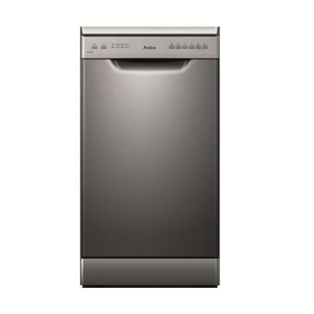Amica ADP1002S Lave-vaisselle pose-libre Amica ADP1002S doté de 6 programmes dont ECO et Verres. - Type de produit : Lave-vaisselle 45 cm.Nombre de couverts standard : 10.IEE : 55.9.Classe d'efficacité énergétique : E.Indice de performance de lavage : 1.130.Indice de performance de séchage : 1.070.C