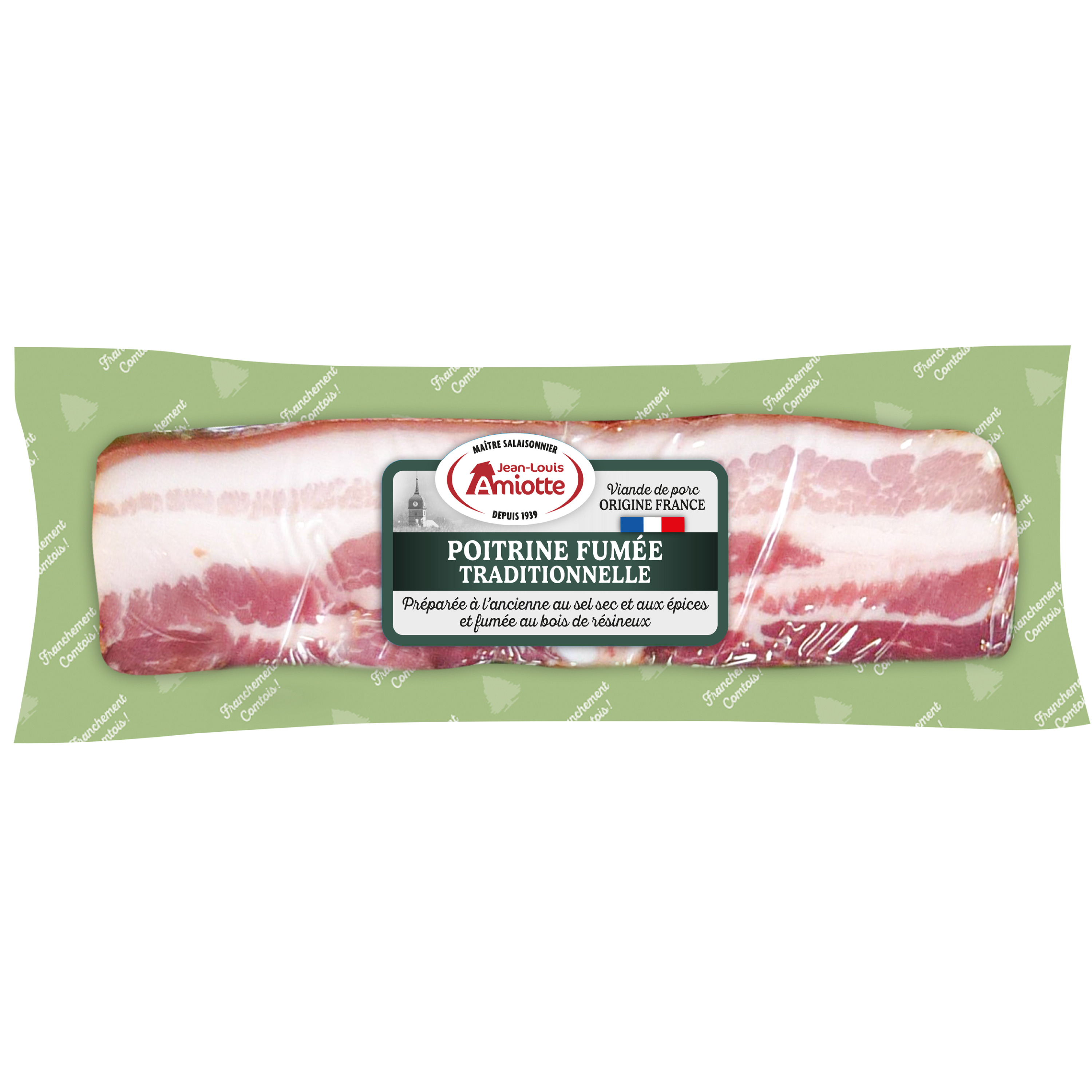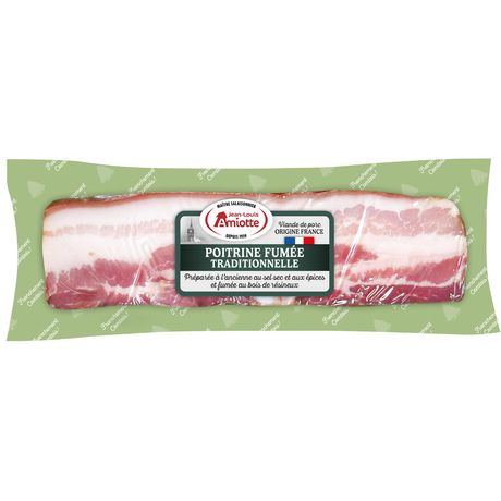 Ingrédients : Poitrine de porc, sel, dextrose, antioxydant: E301, épices, arômes, conservateur: nitrite de sodium.