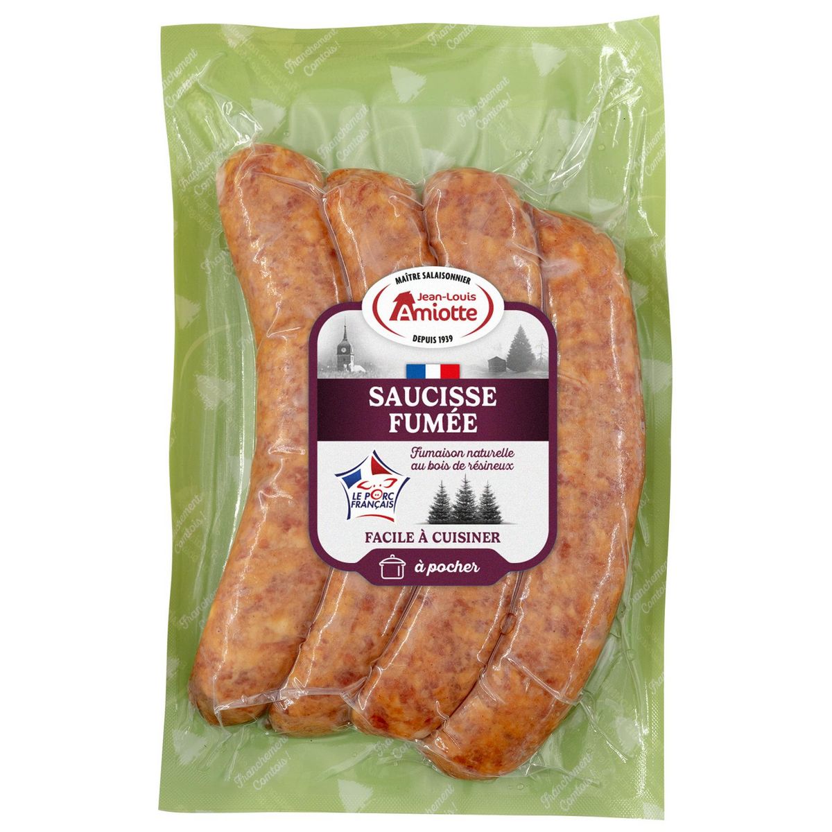 Saucisse fumée à cuire jean Louis Amiotte par quatre 440g