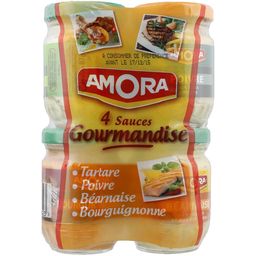 Bourguignonne, Tartare, Béarnaise, Poivre, des recettes qui résonnent depuis très longtemps dans les cuisines françaises. Indispensables pour apporter de la chaleur et de la variété à table! - Et pour répondre aux envies de toute la famille, découvrez des idées recettes et tous les autres produits Amora sur https://www.amora.fr/ Amora, Par Amour du Goût Sauce Bourguignone à la tomate / Sauce Béarnaise à l'estragon et aux échalotes / Sauce Tartare / Sauce Poivre aux 3 poivres