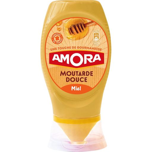 Amora, par amour du goût. Amora met sa passion du goût à votre service pour vous proposer des produits de qualité qui sauront relever tous vos plats. Parce qu’Amora sait que la qualité des produits est au cœur des préoccupations des mamans, Amora s'engage à offrir des produits dont toutes les saveurs sont préservées... Présente dans le cœur des français depuis 1934, Amora continue de séduire chaque année avec des nouveautés simples, goûteuses et originales. Reconnue et appréciée pour son savoir-faire et la qualité de ses produits, réalisez des recettes faciles, gourmandes, savoureuses et réinventez vos plats en leur donnant toujours plus de goût avec Amora. Sur le bord de l'assiette, dans vos sandwichs, ou à chaud, les produits Amora assaisonneront et relèveront les saveurs de votre cuisine. Découvrez ainsi le plaisir de partager de délicieux repas en famille ou entre amis. Retrouvez toutes les astuces et les recettes faciles et gourmandes Amora : vous régalerez les grands comme les petits, pour le plaisir de toutes les papilles... Après plus de 70 ans d'existence, la moutarde Amora fait partie du patrimoine culinaire français. Qu'elles soient fortes, douces ou aromatisées… Les iconiques moutardes Amora vous inspireront une cuisine de caractère, et vous aideront à relever viandes, sauces, fonds de tartes, pique-niques et apéritifs … Pour des idées de recettes ou pour découvrir plus de produits Amora®, retrouvez-nous sur notre site internet www.amora.fr/produits/ Moutarde douce.