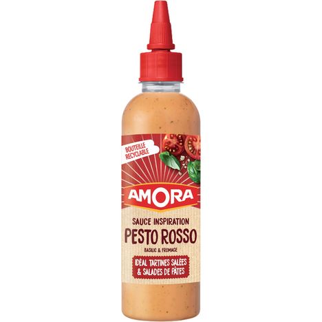 Entreprise historique française autrefois spécialisée dans la distribution de condiments, Amora fait preuve d'un savoir faire unique et d'une philosophie irréprochable en matière de gastronomie. Présente depuis plus de quarante ans sur la majorité des tables de l'hexagone, cette marque typiquement française fait désormais partie du paysage gourmand et a su par sa forte politique d'innovations répondre aux attentes et exigences de chacun. Tout est étudié pour fournir des saveurs inoubliables et authentiques à vos papilles tout en privilégiant l'utilisation de produits nobles qui raviront vos exigences de qualité et accompagneront parfaitement vos moments conviviaux en famille ou entre amis. Simplicité, savoir-faire et passion pour les bonnes choses caractérisent les produits Amora. Goûtez au plaisir d’une onctueuse sauce combinant parfaitement le caractère du fromage à la fraîcheur du basilic pour apporter des saveurs authentiques à vos légumes, salades de pâtes, tartines salées et viandes blanches. Présentée dans son format bouteille pratique et très facile à transporter, notre sauce Amora inspiration Pesto Rosso sera le compagnon idéal de vos pique-niques et barbecues. En plein air comme en intérieur, vous voyagerez sans bouger avec nos goûts exotiques et originaux. Étonnez vos amis avec les nouvelles recettes et saveurs uniques Amora?! Aussi, pour répondre aux envies de toute la famille, découvrez des idées de recettes faciles et tous les autres produits Amora sur https://www.amora.fr/