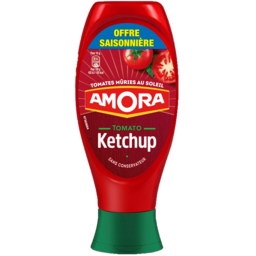 Tomato Ketchup. Les secrets des Ketchups Amora ? Une recette unique faite à partir de tomates juteuses, mûries en plein champ et sélectionnées pour leur qualité et leur saveur naturelle. Les Ketchups Amora vous aideront à rehausser le goût de vos poêlées de légumes, de vos pâtes, de vos marinades ou de vos farces à base de viande. De plus les Ketchups Amora sont sans conservateur, ni colorant*. Présente dans le cœur des français depuis 1919, Amora est reconnue et appréciée pour son savoir-faire et la qualité de ses produits. La marque continue de séduire chaque année avec des nouveautés authentiques, pleines de goût et originales. Nos Ketchup, préparés avec des tomates issues de l’agriculture durable. Le Ketchup Amora est élaboré à partir de tomates juteuses, mûries au soleil et cultivées dans un respect de l’environnement. En effet, nous faisons pousser nos tomates au soleil, en plein champ, et ne les récoltons que durant la saison. Réalisez des recettes faciles et gourmandes et réinventez vos plats en leur donnant toujours plus de goût avec Amora. Sur le bord de l'assiette, dans vos sandwichs, ou à chaud, les produits Amora assaisonneront tous vos plats et relèveront les saveurs de votre cuisine. Découvrez ainsi le plaisir de partager de délicieux repas en famille ou entre amis. Retrouvez toutes les astuces et les recettes faciles et gourmandes Amora : vous régalerez les grands comme les petits, pour le plaisir de toute la famille ! Retrouvez-nous sur notre site internet : www.amora.fr *Comme la réglementation l’exige.