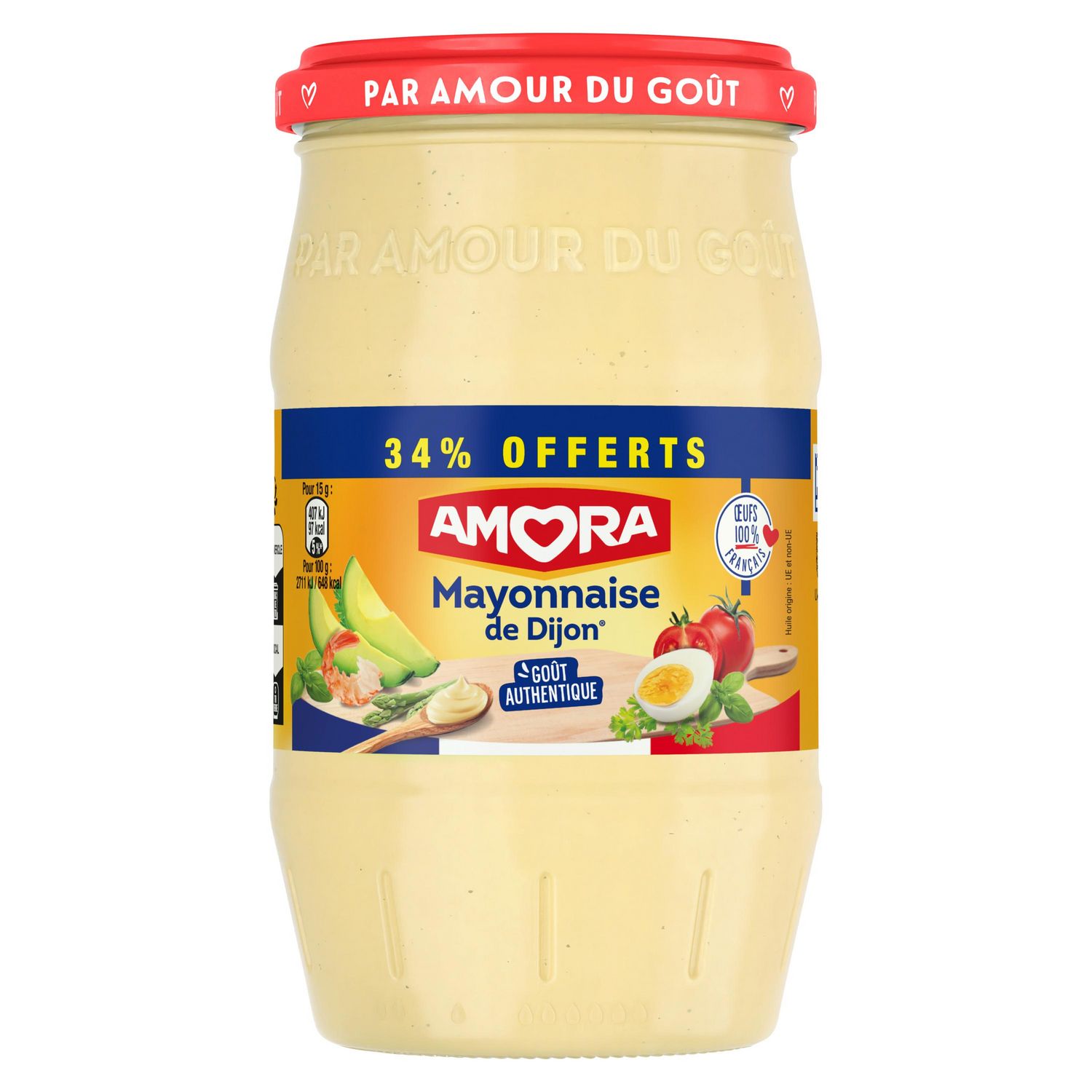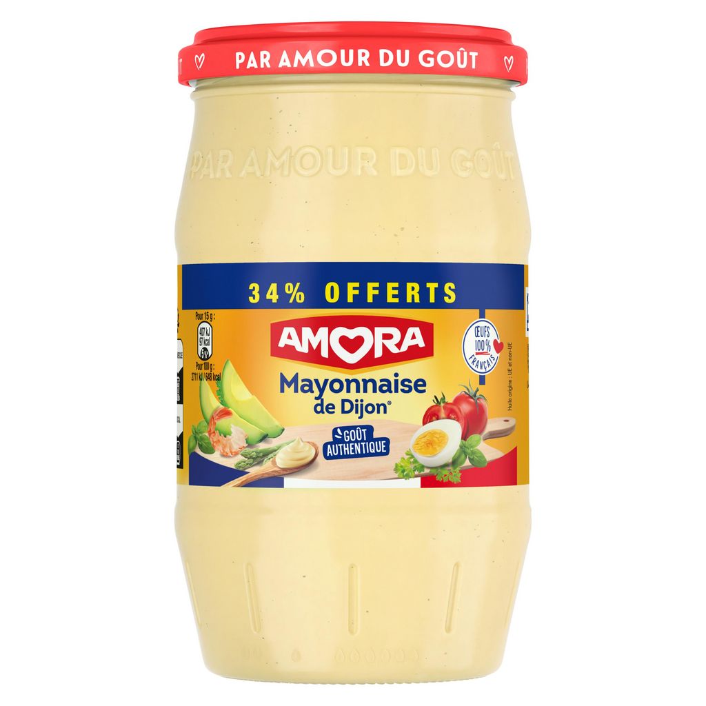 Découvrez le goût authentique de la Mayonnaise de Dijon® Amora® préparée avec tout le savoir-faire d'Amora®, dans un bocal de 605 g. Si la Mayonnaise de Dijon® Amora® est si bonne, c'est qu'elle est faite à partir d'ingrédients de qualité : des œufs 100% français et notre moutarde de Dijon. Elle est sans conservateurs, et fabriquée dans la région de Dijon. Partagez ce qu'il y a de meilleur : notre recette unique et généreuse pour régaler petits et grands. Notre mayonnaise de Dijon® est disponible dans un bocal en verre entièrement recyclable. Présente dans le cœur des Français depuis 1919, Amora® est reconnue et appréciée pour son savoir-faire et la qualité de ses produits. La marque séduit chaque année avec des nouveautés, pleines de goût et originales. Réalisez des recettes faciles et gourmandes, et réinventez vos plats en leur donnant toujours plus de goût avec Amora®. Sur le bord de l'assiette, dans vos sandwichs, ou à chaud, les produits Amora® assaisonneront tous vos plats et relèveront les saveurs de votre cuisine. Découvrez ainsi le plaisir de partager de délicieux repas en famille ou entre amis. Retrouvez toutes les astuces et les recettes gourmandes Amora® sur www.amora.fr : vous régalerez les grands comme les petits, pour le plaisir de toute la famille. Avec les condiments Amora ®, partagez plus qu'un repas !