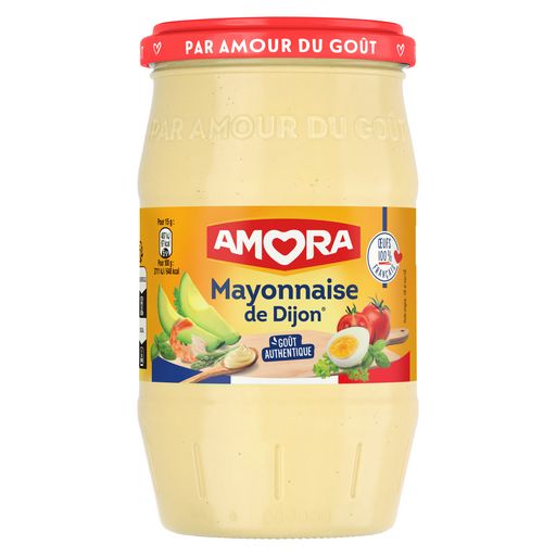 Découvrez le goût authentique et généreux de la Mayonnaise de Dijon Amora® dans un bocal en verre de 605 g. Cette mayonnaise nature est composée d'ingrédients de qualité : des œufs 100 % français, notre moutarde de Dijon et le savoir-faire d'Amora®. Partagez ce qu'il y a de meilleur : une recette sans conservateurs, préparée à Dijon. La mayonnaise pour régaler toute la famille : une recette de mayonnaise de Dijon au goût authentique et à la texture onctueuse et généreuse. Une recette gourmande de mayonnaise qui accompagnera parfaitement vos poulets, vos légumes ainsi que vos salades, vos crudités et vos œufs mimosa. Parce qu'il est important pour nous de limiter notre impact environnemental, notre bocal en verre transparent est entièrement recyclable. Avec la mayonnaise de Dijon Amora®, partagez plus qu'un repas ! Réalisez des recettes faciles et gourmandes et réinventez vos plats en leur offrant toujours plus de goût avec Amora ®. Sur le bord de l'assiette, dans vos sandwichs, ou à chaud, les produits Amora® assaisonneront tous vos plats (salades, poissons, viandes, légumes...) et relèveront les saveurs de votre cuisine. Découvrez ainsi le plaisir de partager de délicieux repas en famille ou entre amis. Vous régalerez les grands comme les petits, pour le plaisir de toutes les papilles !