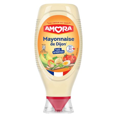 Découvrez le goût authentique et généreux de la Mayonnaise de Dijon Amora. Cette mayonnaise est composée d'ingrédients de qualité : des œufs 100 % français, notre moutarde de Dijon et le savoir-faire d'Amora. Partagez ce qu'il y a de meilleur : une recette sans conservateurs, préparée à Dijon. La Mayonnaise pour régaler toute la famille : une recette de Mayonnaise de Dijon au goût authentique et à la texture onctueuse et généreuse. Une recette gourmande de mayonnaise qui vous accompagnera dans vos pique-niques et agrémentera vos sandwichs, vos œufs mimosas, vos brochettes et vos salades. Présente dans le cœur des Français depuis 1919, Amora est reconnue et appréciée pour son savoir-faire et la qualité de ses produits. La marque séduit chaque année avec des recettes pleines de goût, simples et originales. Réalisez des recettes faciles et gourmandes et réinventez vos plats en leur offrant toujours plus de goût avec Amora. Sur le bord de l'assiette, dans vos sandwichs, ou à chaud, les produits et condiments Amora assaisonneront tous vos plats (salades, poissons, viandes, légumes...) et relèveront les saveurs de votre cuisine. Découvrez ainsi le plaisir de partager de délicieux repas en famille ou entre amis. Vous régalerez les grands comme les petits, pour le plaisir de toutes les papilles !