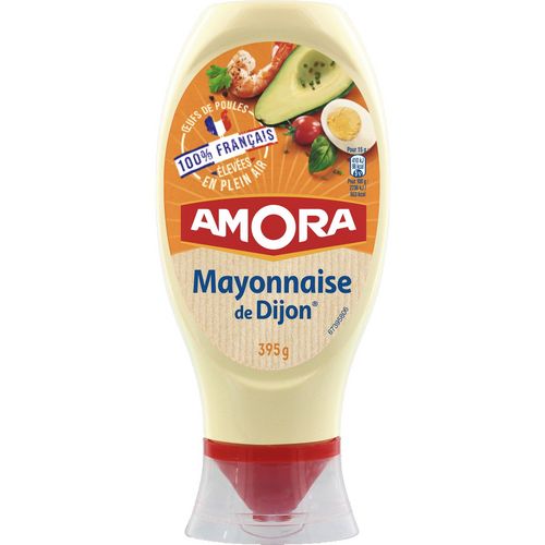 Cette nouvelle gamme de Mayonnaises de Dijon® Amora est faite à partir d’œufs 100 % français de poules élevées en plein air. Unilever considère qu’il est important de veiller au bien-être animal, et nous garantissons ainsi la qualité « œufs de poules élevées en plein air » dans nos Mayonnaises de Dijon® Amora. Les œufs de ces recettes proviennent d’environ 80 fermes, qui sont de petites exploitations familiales situées dans différentes régions de France, et notamment du Pays de la Loire, des Deux-Sèvres, de la Bretagne et de la Normandie. Nos mayonnaises aux œufs 100 % français sont produites en France, dans notre site de production de Chevigny-Saint-Sauveur, près de Dijon. Si la Mayonnaise de Dijon Amora est si bonne, c'est parce qu'elle est composée d'ingrédients de qualité : des jaunes d'œufs de poules élevées en plein air et de la délicieuse Moutarde de Dijon Amora. De plus, la gamme de Mayonnaises de Dijon Amora, disponible en bocaux, verres, tubes et flacons souples est sans conservateurs ! Présente dans le cœur des Français depuis 1919, Amora est reconnue et appréciée pour son savoir-faire et la qualité de ses produits. La marque continue de séduire chaque année avec des nouveautés authentiques, pleines de goût et originales. Réalisez des recettes faciles et gourmandes et réinventez vos plats en leur donnant toujours plus de goût avec Amora. Sur le bord de l'assiette, dans vos sandwichs, ou à chaud, les produits Amora assaisonneront tous vos plats et relèveront les saveurs de votre cuisine. Profitez ainsi du plaisir de partager de délicieux repas en famille ou entre amis. Découvrez toutes les astuces et les recettes faciles et gourmandes Amora : vous régalerez les petits comme les grands, pour le plaisir de toute la famille ! Mayonnaise à la moutarde de Dijon.