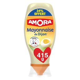 Ingrédients : huile de colza 68%, eau, vinaigre de vin blanc, moutarde de Dijon (eau, graines de MOUTARDE, vinaigre d'alcool, sel), jaune d'ŒUF origine France 5,1%, sel, sucre, arômes, épaississant : gomme xanthane, colorants : lutéine et extrait de paprika.