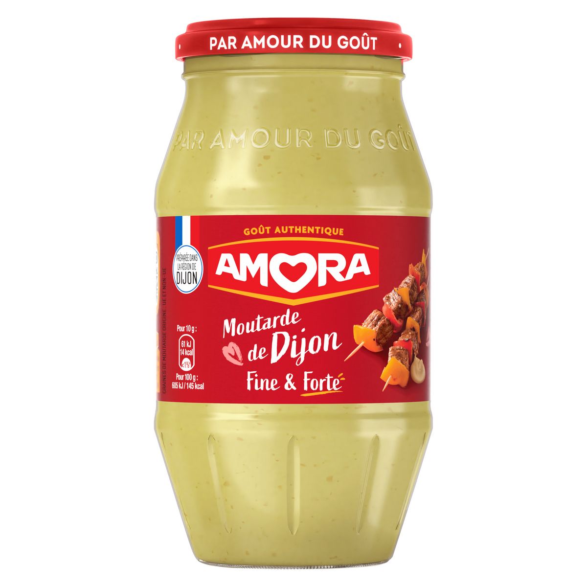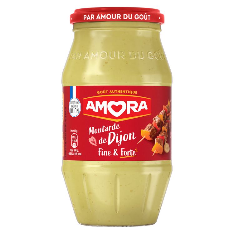La moutarde de Dijon fine et forte Amora, préparée dans la région de Dijon*, apporte toute la finesse d'une bonne moutarde avec un vrai piquant.