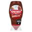 Ingrédients : eau, sucre, vinaigre de vin blanc, purée de tomates double-concentrée, mélasse, amidon modifié de maïs, sel, sauce worcestershire (eau, sirop de glucose, vinaigre de malt d'ORGE, sucre, sel, arôme, extrait d'oignon, ANCHOIS, jus de citron concentré, épices, aromates, ail en poudre), huile de colza, arômes, épices, farine de MOUTARDE, oignon fumé en poudre, conservateur : acide sorbique, épaississant : gomme xanthane.