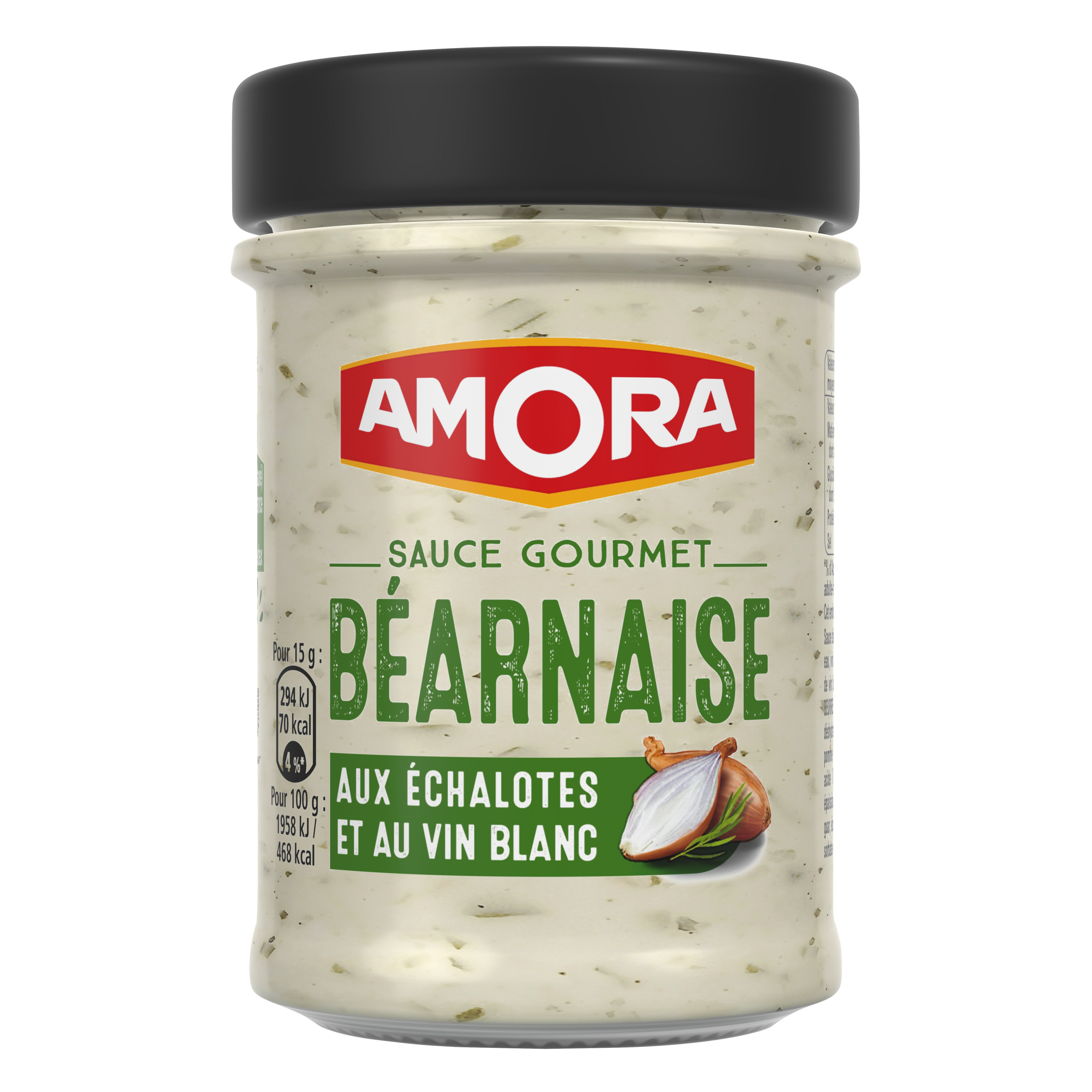 Découvrez la sauce Gourmet Béarnaise Échalotes Vin Blanc Amora. Cette sauce est faite à partir d'ingrédients soigneusement sélectionnés et ne contient ni colorants ni arômes artificiels. Une recette de béarnaise rehaussée avec des échalotes et du vin blanc, une texture onctueuse et un goût unique. Cette sauce à la saveur équilibrée, est idéale avec de la viande rouge, comme un steak de bœuf, mais aussi du saumon ou un poisson blanc grillé au four. Une sauce Béarnaise qui ravira toute la famille, les petits comme les grands, pour de vrais repas conviviaux ! Le tout dans un bocal en verre transparent de 184 g et 100 % recyclable, que vous serez fier de mettre sur votre table. À conserver au réfrigérateur après ouverture. Les sauces Gourmet Amora ne contiennent ni colorants ni arômes artificiels. Leur goût authentique provient de leurs ingrédients soigneusement sélectionnés, de leurs délicats petits morceaux et de leur texture onctueuse. Avec les sauces de variétés Amora, donnez du goût à vos plats du quotidien (viandes, poissons, légumes, salades). Présente dans le cœur des Français depuis 1919, Amora est reconnue et appréciée pour son savoir-faire et la qualité de ses produits. La marque séduit chaque année avec des recettes pleines de goût, simples et originales. Réalisez des recettes faciles et gourmandes et réinventez vos plats en leur donnant toujours plus de goût avec Amora. Sur le bord de l'assiette, dans vos sandwichs, ou à chaud, les produits Amora assaisonneront tous vos plats et relèveront les saveurs de votre cuisine. Découvrez ainsi le plaisir de partager de délicieux repas en famille ou entre amis. Retrouvez tous les produits Amora et des idées recettes sur www.amora.fr. Vous régalerez les grands comme les petits, pour le plaisir de toutes les papilles !