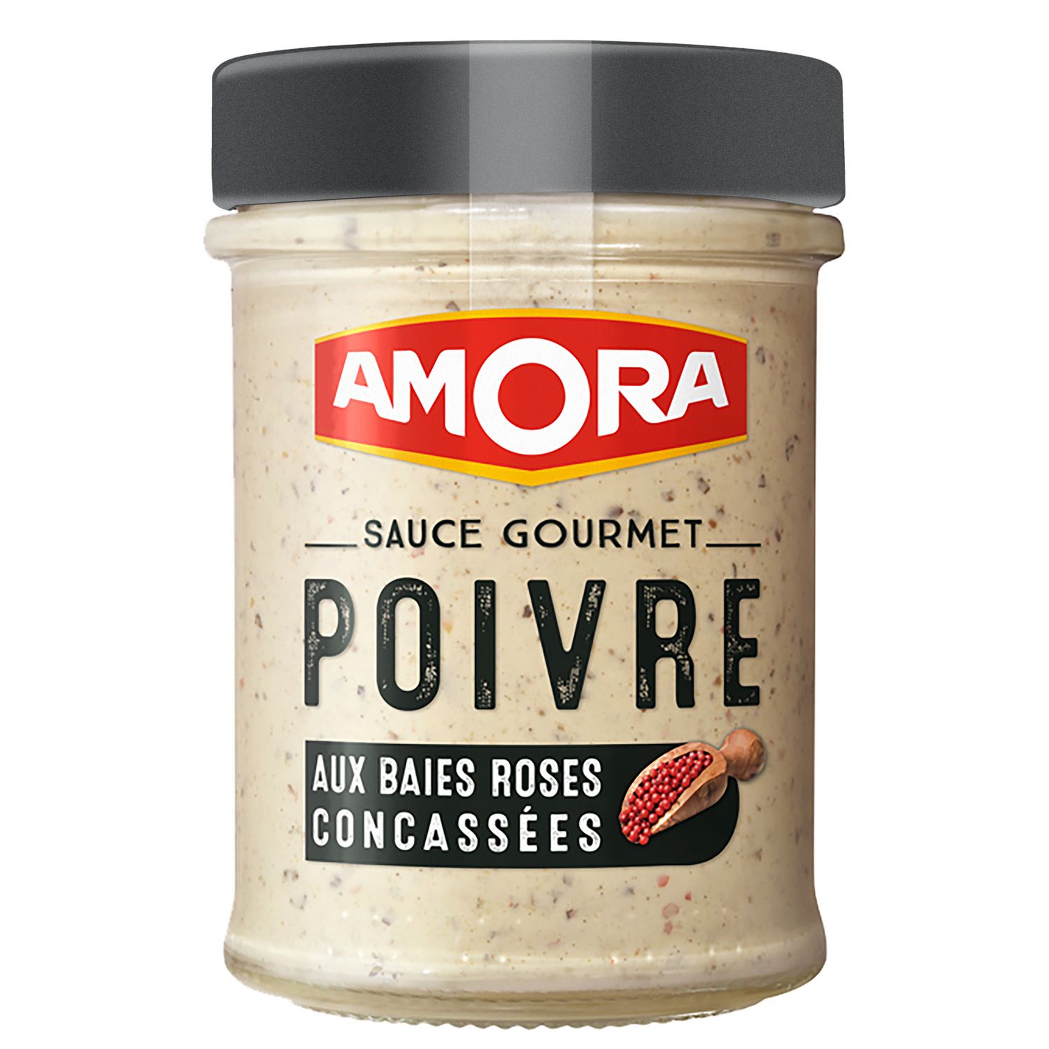 Découvrez la recette gourmet de la sauce POIVRE Amora. Une recette de sauce à la texture onctueuse et au goût unique relevé aux baies roses concassées pour un goût unique. Avec Amora, partagez ce qu'il y a de meilleure : une sauce sans colorant ni arôme artificiel. Avec sa sauce gourmet Poivre, Amora accompagne parfaitement toutes vos viandes et poissons grillées, mais est aussi idéal pour relever vos cakes au fromage. Découvrez la sauce Gourmet poivre aux baies roses Amora dans un bocal en verre transparent et moderne de 188 g, 100 % recyclable. Avec les Sauces Gourmet Amora, donnez du goût à vos plats du quotidien en toute simplicité. Leurs textures onctueuses et leurs saveurs sauront agrémenter chacun de vos repas pour le plaisir de toute la famille. La gamme Amora Sauce Gourmet ne contient ni colorant ni arôme artificiel. Son goût unique provient de ses bons ingrédients, de ses délicats petits morceaux et de sa texture onctueuse. Présente dans le cœur des Français depuis 1919, Amora est reconnue et appréciée pour son savoir-faire et la qualité de ses produits. La marque continue de séduire toute la famille chaque année avec des nouveautés, pleines de goût et originales. Retrouvez toutes les astuces et les recettes faciles et gourmandes Amora sur notre site internet www.amora.fr