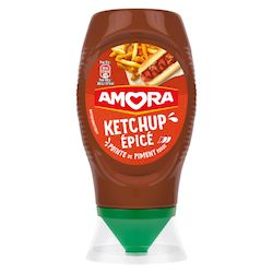 Découvrez le Ketchup Épicé Amora ®, une recette au bon goût de tomates mûries au soleil et relevée par une pointe de piment rouge de Cayenne.