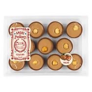 Ingrédients : Tartelette : farine de blé, beurre, sirop de glucose, sucre glace, poudre de cacao maigre, sel, arôme chocolat, épaississant : gomme de xanthane.