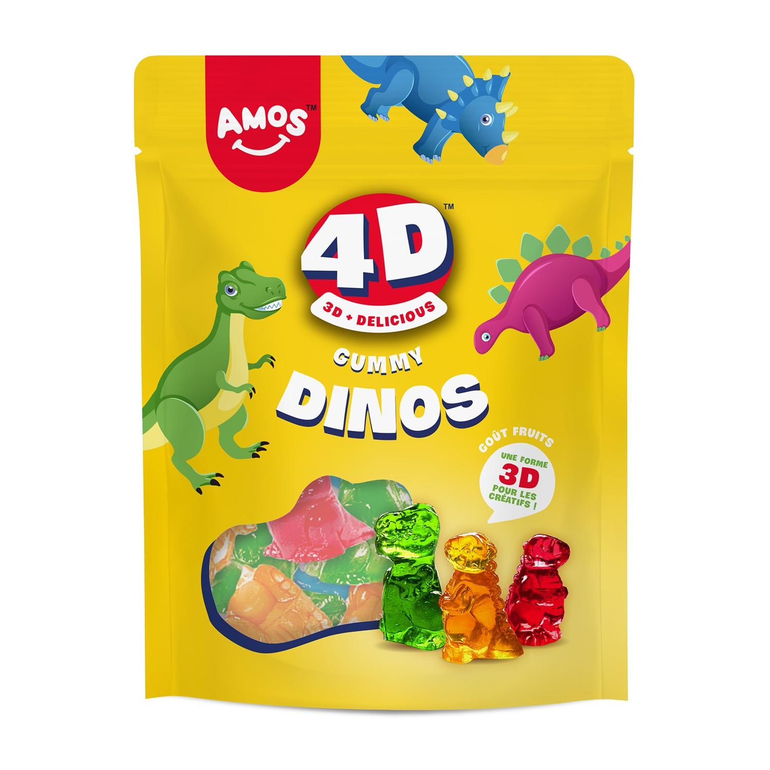 Un bonbon moelleux au goût fruité avec une forme 3D inédite et créative de dinosaure.