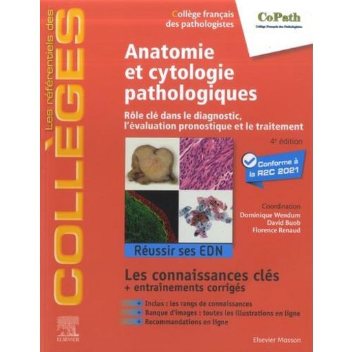 En parfaite conformité avec le programme de DFASM (diplôme de formation approfondie en sciences médicales) s'inscrivant dans la R2C 2021 cet ouvrage rassemble l'ensemble des connaissances indispensables en anatomie et cytologie pathologiques. Il présente dans le détail les items du programme relevant de cette spécialité et comporte deux parties : une partie Connaissances composée de 36 chapitres commençant chacun par un tableau de hiérarchisation des connaissances en rangs A B puis développant la thématique avec l'indication des rangs au fil du texte (les rangs C pour aller plus loin sont abordés) étayée de points clés tableaux et figures de rubriques sur les notions à retenir , une partie Entraînement qui propose 11 dossiers progressifs corrigés 102 QI corrigées qui permettent de s'entraîner efficacement pour les EDN. Cette 4e édition est une mise à jour de l'ensemble des données médicales des recommandations et des entraînements. Elle s'enrichit de nouvelles illustrations et propose un accès à une banque d'images en ligne ainsi qu'à des vidéos.