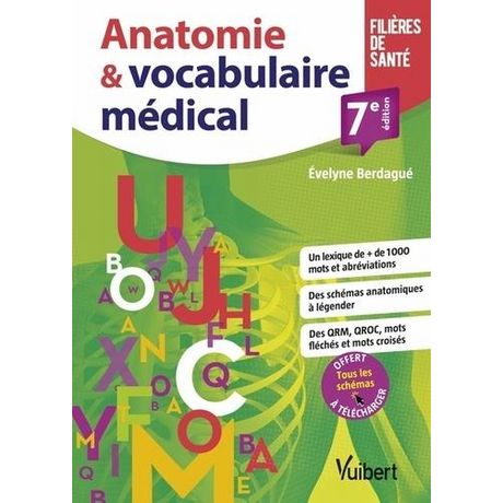 Maîtriser parfaitement les bases de l'anatomie et du vocabulaire médical est indispensable pour s'engager dans une filière de santé. Ce livre vous propose des outils accessibles et ludiques pour assimiler efficacement ces notions : un lexique de plus de 1000 mots et abréviations avec leurs définitions simples et précises , de nombreux exercices corrigés autour de la construction du vocabulaire (préfixes, racines, suffixes), avec des mots fléchés, mots croisés et mots masqués, des QRM, des QROC... pour apprendre, s'entraîner et développer ses propres astuces mnémotechniques , des fiches synthétiques sur les principaux organes et appareils , des dessins d'anatomie variés à légender. + tous les schémas en couleurs à télécharger