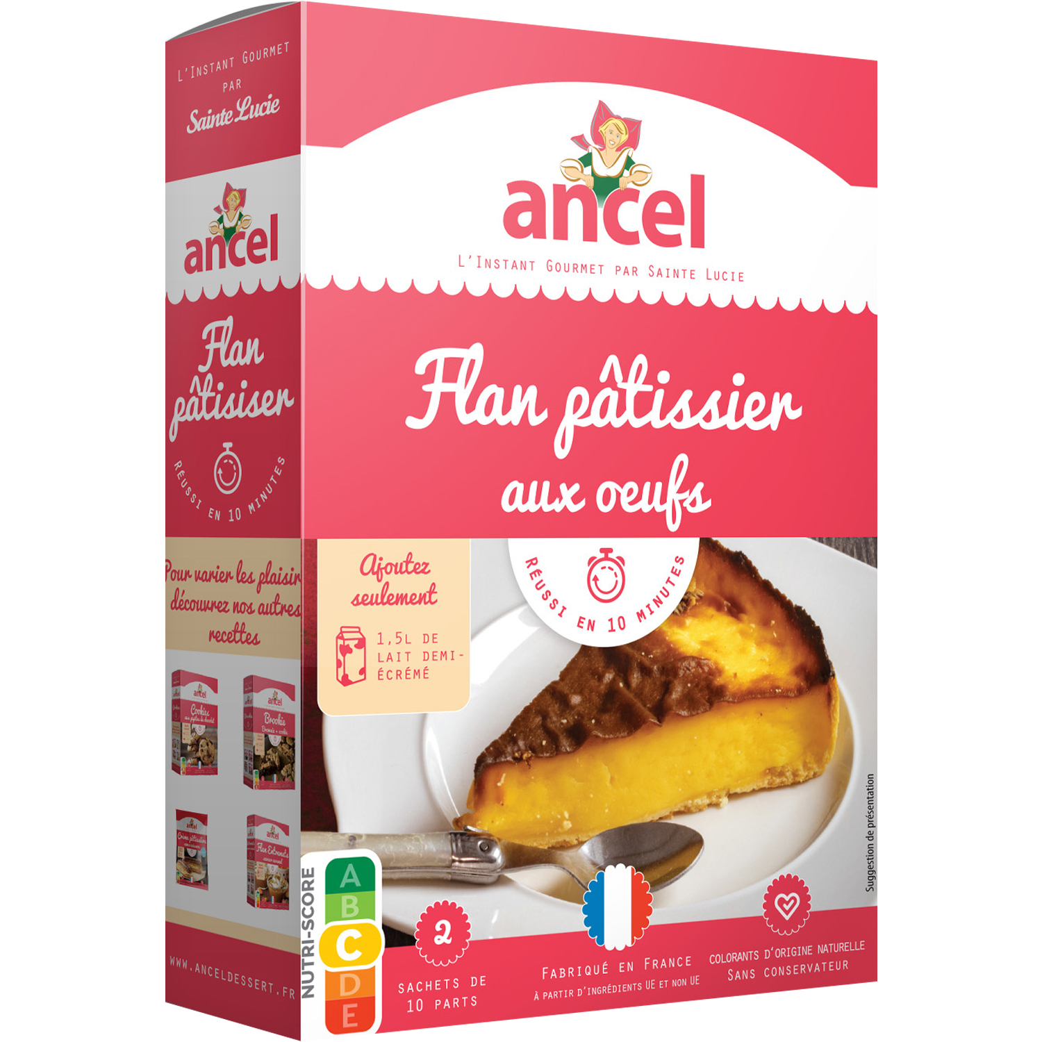 Mon Flan Pâtissier aux œufs - 2 doses Découvrez l'incontournable Flan entremets Ancel. Avec son parfum Vanille, raviver vos convives.