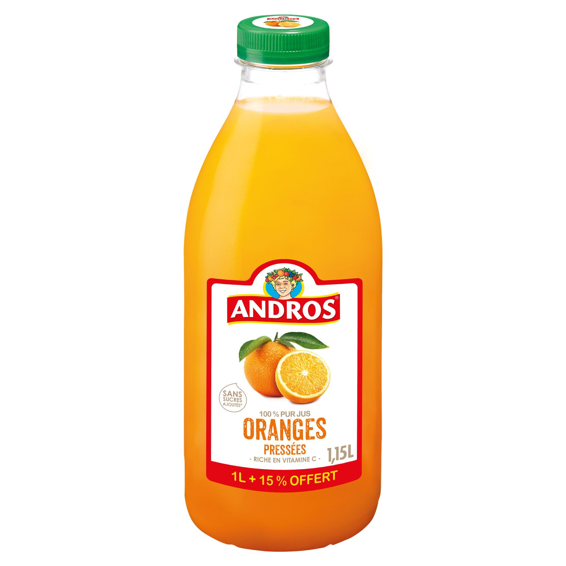 La meilleure chose qui puisse arriver à un fruit bien mûr ? C'est d'être sélectionné par ANDROS. Découvrez notre jus d'oranges 100% pur jus, sans sucres ajoutés (conformément à la réglementation des jus de fruits) et source de vitamine C au bon goût d'oranges cueillies à maturité dans un format généreux 1L + 15% OFFERT. Andros, les fruits c'est la vie !