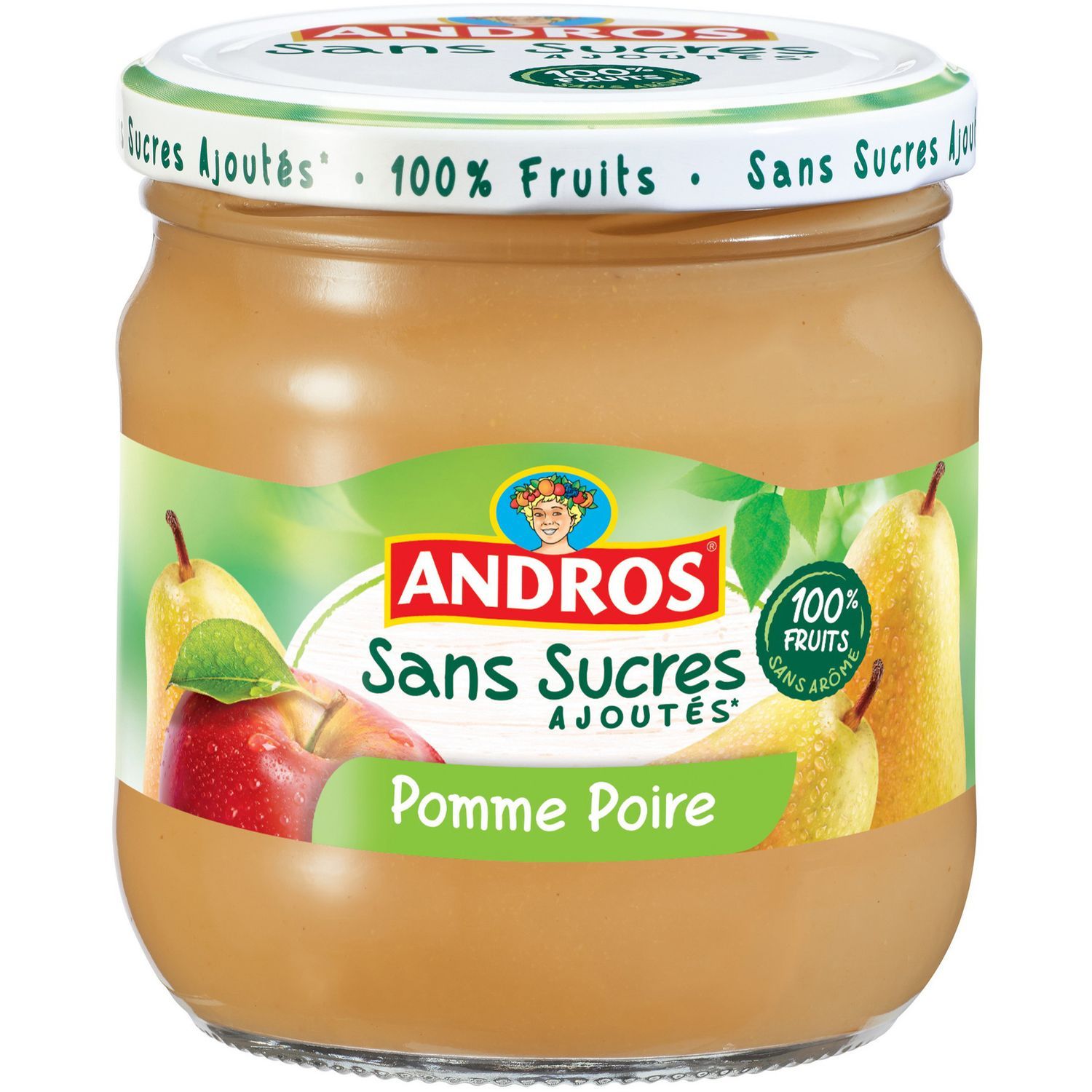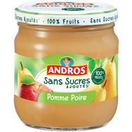 La meilleure chose qui puisse arriver à un fruit bien mûr? C'est d'être sélectionné par ANDROS. Là, il a toutes les chances de se transformer en desserts de fruits sans sucres ajoutés* qui sont bien entendu 100% Fruits, sans arôme ajouté, sans colorant** et sans conservateur. (*Contient des sucres naturellement présents dans les fruits) (**Conformément à la réglementation). Le dessert de fruits en bocal à partager en famille. ANDROS, La Force du Fruit ! Spécialité de pommes et de poires sans sucres ajoutés* * contient des sucres naturellement présents dans les fruits