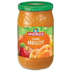 Pommes 57%, Abricots 34%, sucre, gélifiant : pectine de fruits, arôme naturel, antioxydant : acide ascorbique.