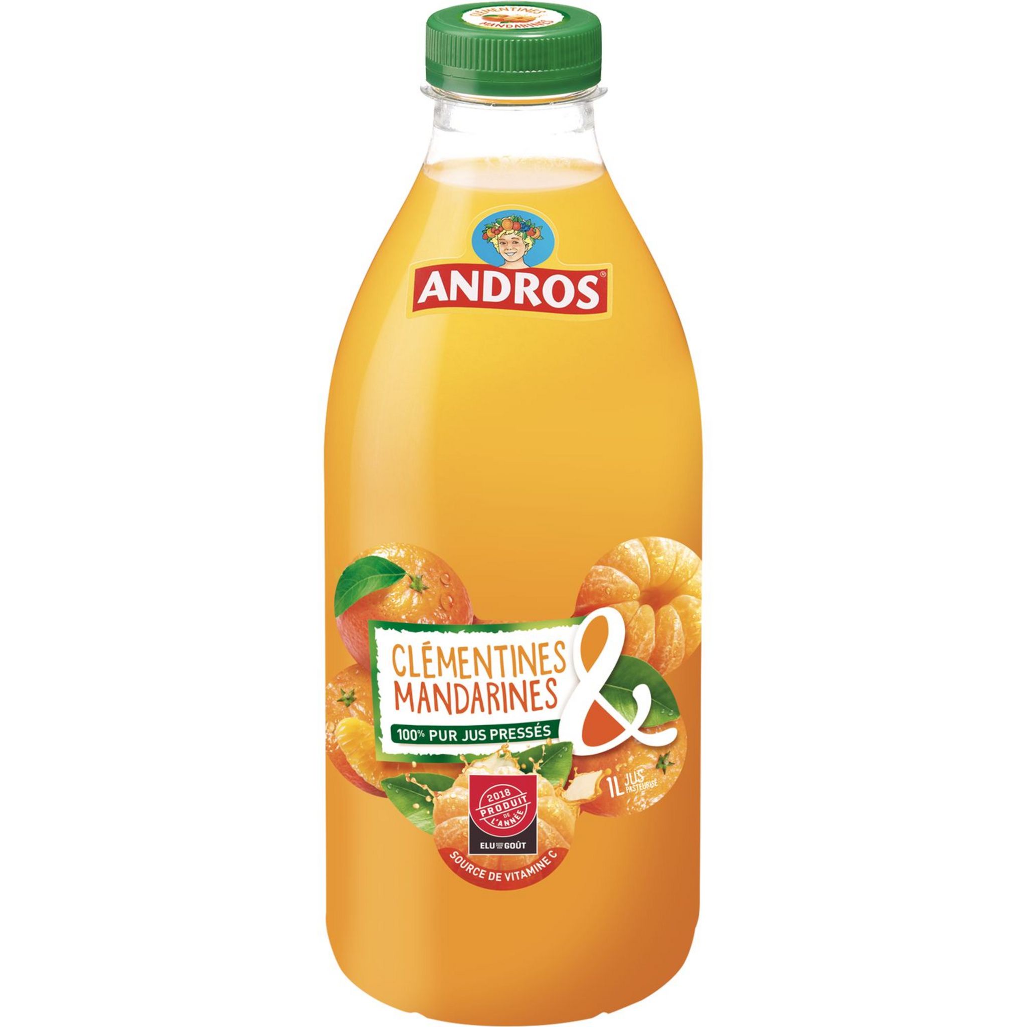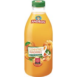 100% Pur jus pressés clémentines mandarines La meilleure chose qui puisse arriver à un fruit bien mûr ? C'est d'être sélectionné par ANDROS. 100% purs jus, sans sucre ajouté (conformément à la réglementation en vigueur). Le fruité de la clémentine sublimé par la puissance de la mandarine. Recette sans pulpe, source de vitamine C. Andros, La Force du Fruit !