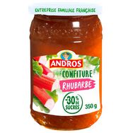Confiture Extra de Rhubarbe allégée en sucres, soit 30% de sucres en moins qu'une confiture traditionnelle.