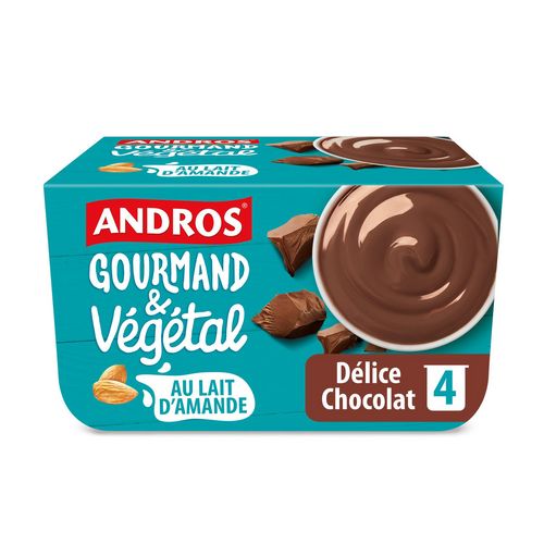 Ce dessert ANDROS Gourmand et Végétal au chocolat au lait d'amande est sans aucun doute l'atlernative végétale la plus gourmande à votre crème dessert habituelle. En plus, elle convient aux personnes intélorantes au lactose, alors faites-vous plaisir !