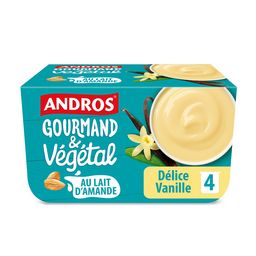 Ce dessert ANDROS Gourmand et Végétal à la vanille au lait d'amande est sans aucun doute l'atlernative végétale la plus gourmande à votre crème dessert habituelle. En plus, elle convient aux personnes intélorantes au lactose, alors faites-vous plaisir !