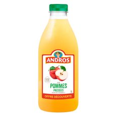 La meilleure chose qui puisse arriver à un fruit bien mûr ? C'est d'être sélectionné par ANDROS. 100% purs jus, sans sucre ajouté (conformément à la réglementation en vigueur). Un jus de pommes pressées, doux et léger qui plaira à toute la famille. Andros, La Force du Fruit ! Jus pommes pressées