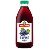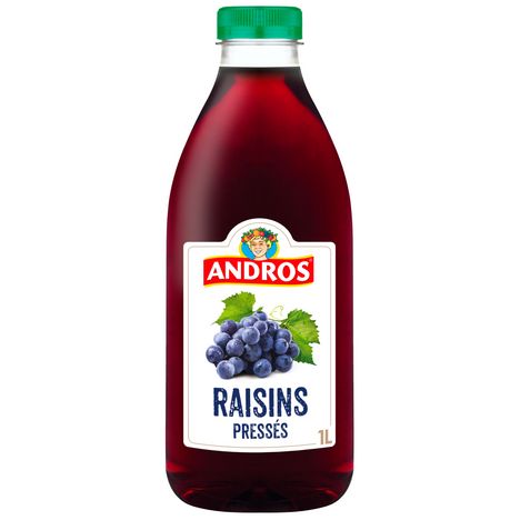 La meilleure chose qui puisse arriver à un fruit bien mûr ? C'est d'être sélectionné par ANDROS. 100% purs jus, sans sucre ajouté (conformément à la réglementation en vigueur). Un jus de raisin au goût doux, parfait pour les familles. Andros, La Force du Fruit ! 100% Pur jus de raisins