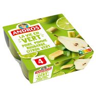 La meilleure chose qui puisse arriver à un fruit bien mûr ? C'est d'être sélectionné par ANDROS. Découvrez le dessert fruitier pomme, poire, rhubarbe et citron pour voir la vie en couleur. La vie en vert, c’est plus de fruits, plus de vitalité, plus de fun... avec un nutriscore A ! (*sans conservateur, sans colorant, conformément à la réglementation).