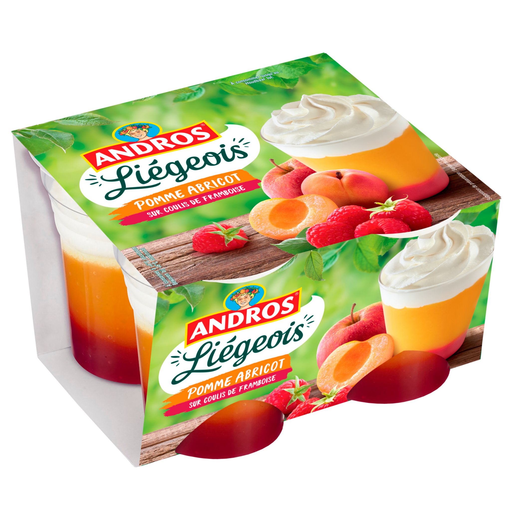 La meilleure chose qui puisse arriver à un fruit bien mûr ? C'est d'être sélectionné par ANDROS. Découvrez le liégeois de fruits pomme abricot sur son coulis de framboise*: le plaisir du fruit mêlé à la crème fouettée. (*sans conservateur, sans colorant, conformément à la réglementation). Andros, tant de bon nous rassemble !