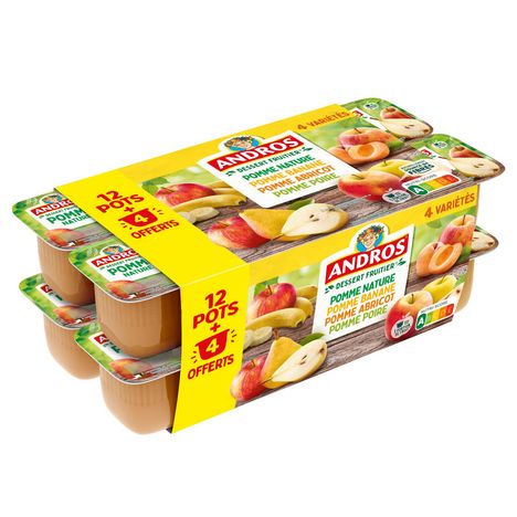 La meilleure chose qui puisse arriver à un fruit bien mûr ? C'est d'être sélectionné par ANDROS. Découvrez le dessert fruitier pomme/poire/banane/abricot : un dessert tout en couleur. (*sans conservateur, sans colorant, conformément à la réglementation). Andros, les fruits c'est la vie !