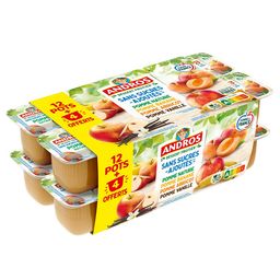 Spécialité aux fruits sans sucres ajoutés pomme - pomme/banane - pomme/abricot - pomme/vanille