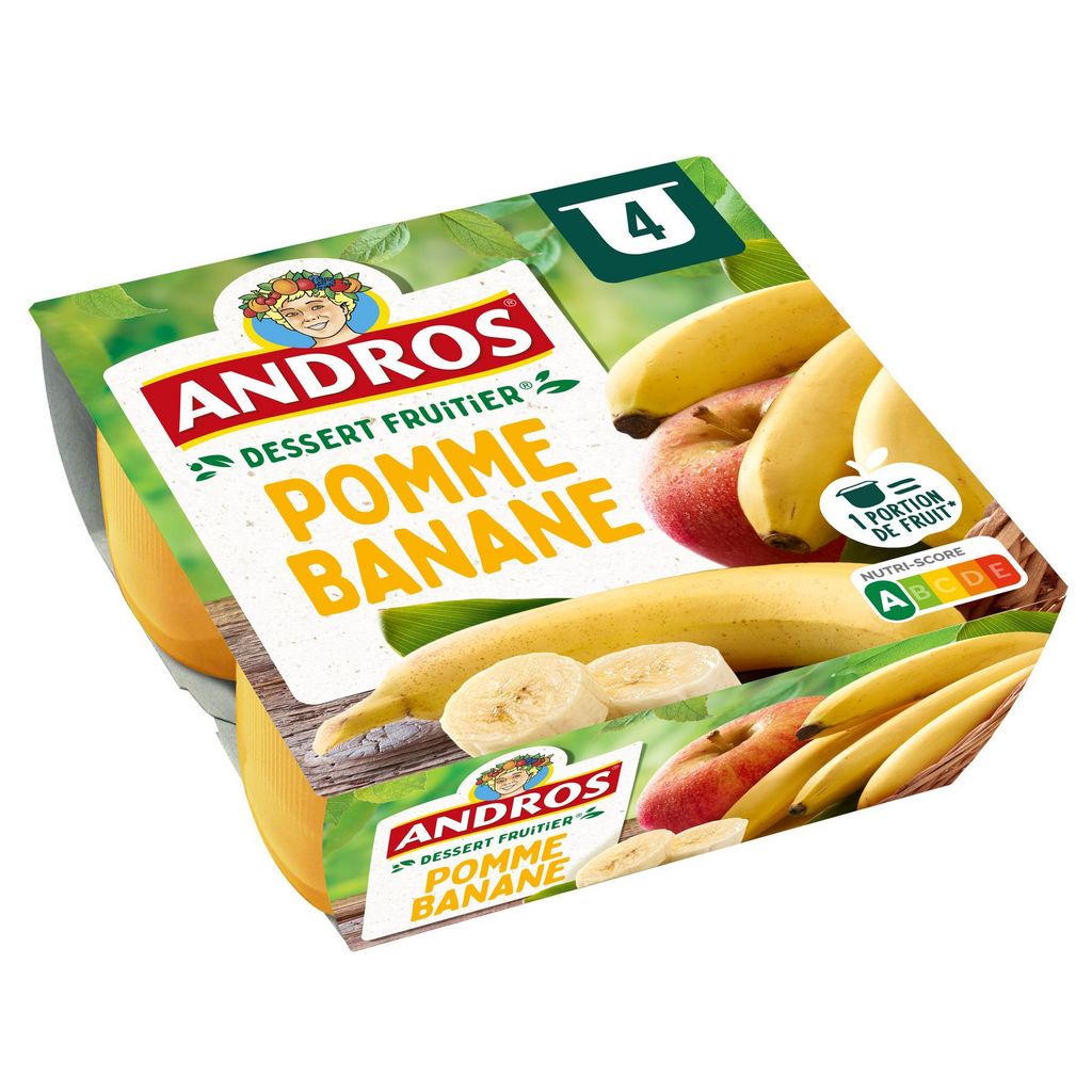 La meilleure chose qui puisse arriver à un fruit bien mûr ? C'est d'être sélectionné par ANDROS. Découvrez le dessert fruitier pomme/banane* qui ravira petits et grands. (*sans conservateur, sans colorant, conformément à la réglementation). Andros, les fruits c'est la vie !
