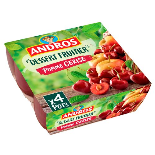 La meilleure chose qui puisse arriver à un fruit bien mûr ? C'est d'être sélectionné par ANDROS. Découvrez le dessert fruitier pomme/cerise* pour un dessert tout en couleur. (*sans conservateur, sans colorant, conformément à la réglementation). Andros, tant de bon à transmettre !