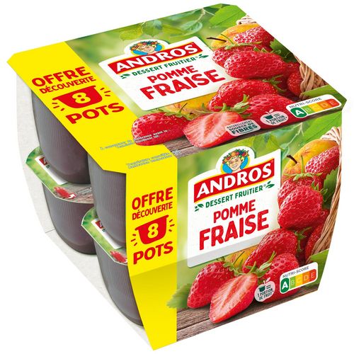 La meilleure chose qui puisse arriver à un fruit bien mûr ? C'est d'être sélectionné par ANDROS. Découvrez le dessert fruitier pomme/fraise* pour un dessert tout en couleur. (*sans conservateur, sans colorant, conformément à la réglementation). Andros, les fruits c'est la vie !