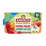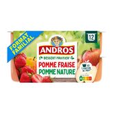 La meilleure chose qui puisse arriver à un fruit bien mûr ? C'est d'être sélectionné par ANDROS. Découvrez le dessert fruitier pomme* et pomme fraise* : 2 variétés pour régaler toute la famille. (*sans conservateur, sans colorant, conformément à la réglementation). Andros, les fruits c'est la vie !