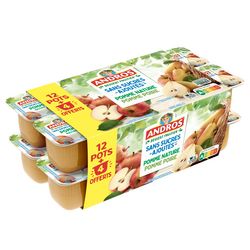 8 Purées de pommes sans sucres ajoutés. 8 Spécialités de pommes et de poires sans sucres ajoutés, aromatisées.