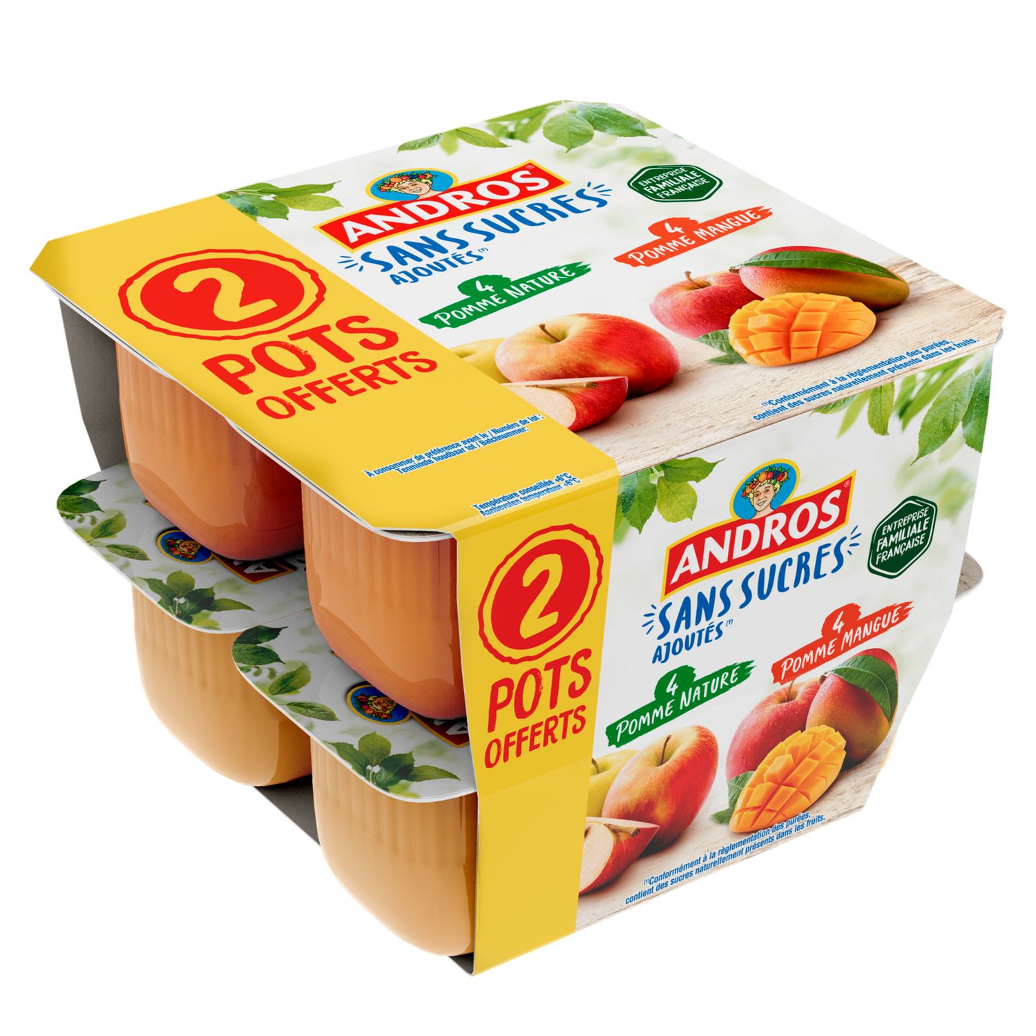 Purée de pommes sans sucres ajoutés. Purée de pommes et de mangues sans sucres ajoutés.