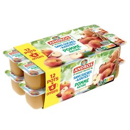 La meilleure chose qui puisse arriver à un fruit bien mûr ? C'est d'être sélectionné par ANDROS. Découvrez le dessert fruitier pomme 100% fruits sans sucres ajoutés*: une recette sans arôme sans colorant** et sans conservateur pour retrouver le vrai goût des fruits. (*Contient des sucres naturellement présents dans les fruits).(**conformément à la réglementation).Andros, les fruits c'est la vie !
