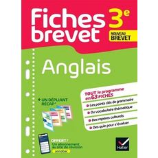 En 63 fiches, l'essentiel du programme d'anglais de 3e. Un outil de révision efficace pour réussir ses contrôles et l'évaluation orale et écrite de fin de 3e. 63 fiches détachables, claires et visuelles - Les points clés en grammaire et en conjugaison - Le vocabulaire à connaître - Des quiz pour se tester Dans le dépliant - La liste des verbes irréguliers - Des repères culturels Avec le livre, un accès gratuit aux ressources de 3e du site www. editions-hatier. fr (Lien -> http : //www. editions-hatier. fr/) (dans la fiche article de l'ouvrage), des podcasts téléchargeables, pour s'entraîner à l'oral.