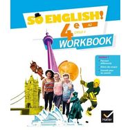 En savoir +Un workbook pour accompagner le manuel So English 4e : - Des repères historiques et un travail sur le lexique, la grammaire, la phonologie à travers des activités variées et ludiques - Certaines activités avec 2 itinéraires pour différencier en fonction du niveau des élèves - Un bilan des acquis à la fin de chaque leçon+ Des conseils aux parents pour suivre et accompagner la progression de leur enfant en anglais. Et sur le site www. editions-hatier. fr/langues-eleves/ : - Des tutos vidéos de méthodologie - Des activités autocorrectives - Les MP3 élève