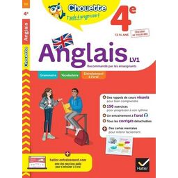 Un cahier pour réviser les points clés du programme d'anglais en 4e et s'entraîner à son rythme, à l'écrit comme à l'oral. - Pour chaque point clé du programme de grammaire en anglais 4e : - un rappel de cours clair et visuel , - des exercices progressifs, avec des aides pour comprendre et réussir. Le cahier comprend aussi des cartes mentales et des exercices pour enrichir son vocabulaire et améliorer sa compréhension orale , tous les fichiers audio associés sont accessibles sur le site (Lien -> http : //www. hatier-entrainement. com/). - En complément, dans un livret détachable à destination des parents : - les corrigés détaillés des exercices , - des informations sur le programme et des conseils pour aider votre enfant dans son travail.