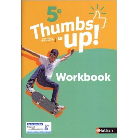 En savoir +Le workbook Thumbs up ! 5e pour accompagner le manuel de l'élève, tout en couleurs, aidant et attrayant - Des stratégies de compréhension pour chaque document du manuel - Des activités de PRL (Pratique Raisonnée de la Langue) pour chaque objectif de communication, destinées à faciliter ensuite la prise de parole ou l'écriture ( Your challenge ) - Un bilan lexical sous forme de spidergram à compléter - Une page dédiée à la préparation de la tâche finale