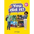You did it ! , une méthode innovante et positive pour tous les élèves de 6e : inspirée par les derniers enseignements de la recherche , adaptée aux besoins actuels des professeurs , attractive , ludique, motivante et accessible , qui valorise les réussites , en phase avec les centres d'intérêt des élèves tout en éveillant leur curiosité , une grammaire créative et joyeuse qui facilite la mémorisation des structures , 7 clips de chansons chorégraphiées très dynamiques, avec karaoké , 7 escape games , 7 tutos peers-to-peers pour les activités créatives Youd did it ! est également une méthode prête à l'emploi qui assure l'autonomie de l'élève et facilite le travail du professeur. Un nombre réaliste d'unités : 7 unités précédées d'une unité de transition CM2-6e pour bien débuter l'année Des activités permettant à l'élève d'apprendre progressivement. Deux projets intermédiaires pour mieux réussir le projet final. Un rebrassage régulier pour une meilleure mémorisation du lexique et des structures. Des documents culturels authentiques. La garantie pour chaque élève de progresser tout au long de l'année grâce à un apprentissage personnalisé et adapté à ses besoins. L'accompagnement de l'élève vers l'autonomie. La possibilité de s'appuyer sur l'hétérogénéité pour permettre à tous de progresser ( pairwork , groupwork ) 8 rituels filmés. _ _ _ _ _ Les engagements des éditions Bordas : Vos collègues sont nos auteurs Nos cahiers sont pensés et conçus par des enseignants professeurs qui enseignent au quotidien dans des environnements variés. Avec leur éditeur, ils créent des outils qui permettent à leurs collègues de travailler sereinement et efficacement et aux élèves d'avancer dans leur scolarité avec confiance. Votre manuel papier est augmenté Tous les contenus numériques de nos manuels sont accessibles gratuitement aux élèves équipés des manuels papier avec un simple smartphone ou via le site https : //college. editions-bordas. fr Votre offre numérique Le manuel numérique enseignant est OFFERT et téléchargeable sur clé USB gratuitement aux adoptants du papier ou du numérique. Le manuel numérique élève est OFFERT pendant 5 ans aux adoptants du manuel papier. Nous sommes éco-responsables Bordas est un éditeur éco-responsable qui s'engage pour la préservation de l'environnement et utilise du papier issu de forêts gérées de manière responsable et d'autres sources contrôlées. >> En savoir plus sur notre démarche éco-responsable Nous imprimons en Europe Nous sommes très attentifs à réduire les émissions de CO2 liées au transport. Quand l'impression en France n'est pas possible, nous imprimons dans d'autres pays d'Europe. Notre expertise au service de l'éducation Notre engagement : mettre la rigueur et l'expertise de nos auteurs et de nos éditeurs au service de l'éducation pour favoriser la réussite de tous.