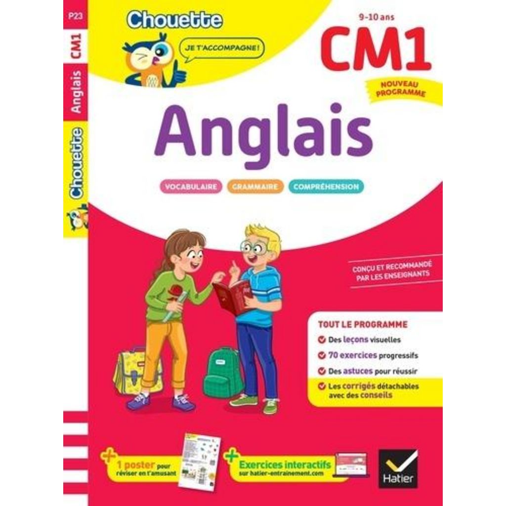 Ce cahier conçu et recommandé par des enseignants permettra à votre enfant de s'entrainer, consolider ses acquis et de s'évaluer en Anglais durant toute son année de CM1. Pour chaque domaine d'apprentissage (Vocabulaire, Grammaire, Compréhension), retrouvez : - Des leçons visuelles avec des exemples concrets pour mémoriser l'essentiel - Des exercices ciblant les notions clés du programme de CM1 - Des Conseils de la Chouette pour bien retenir - Des corrigés détachables pour vérifier les acquis et évaluer les résultats de l'enfant - Un tableau de bord pour reporter les résultatsEn cadeau, un grand poster à colorier ! - L'achat du cahier permet d'accéder gratuitement au site d'entrainement (Lien -> http : //www. hatier-entrainement. com/) et à ses différentes ressources, dont des cartes mentales pour apprendre facilement, des jeux et exercices interactifs. Retrouvez les autres titres de la collection Chouette Entrainement pour le CM1 en Français, Dictées, Maths et Résolution de problèmes.