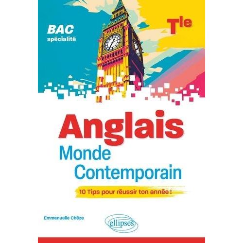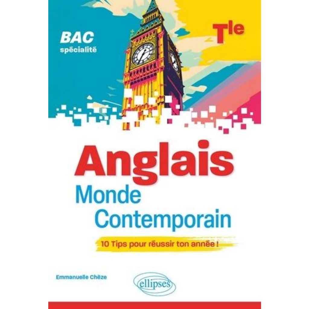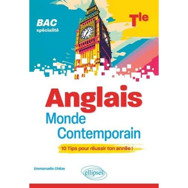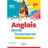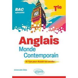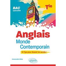 Guide de préparation aux épreuves du BAC de spécialité Anglais Monde Contemporain, cet ouvrage, composé de 10 TIPS ou chapitres, traite tous les exercices type-bac en exposant d'abord la méthode de façon synthétique et visuelle avant de proposer un entrainement guidé. Allant à l'essentiel, il fournit de nombreuses clés permettant d'organiser votre préparation et vos révisions de façon efficace. Au programme : une première partie consacrée à l'épreuve écrite : réussir sa synthèse, gérer la traduction, acquérir la méthode de l'essai, maîtriser la transposition , une deuxième partie portant sur les épreuves orales : préparer son épreuve orale, travailler sur le Grand Oral , une troisième partie proposant des outils pour réviser : dico des connecteurs, pêle-mêle des citations, fiches révisions, cartes mentales de mots clés , une quatrième partie comprenant les corrigés, la liste des fiches méthodo, un tableau récapitulatif des axes et des thématiques. Les plus : adapté pour un travail précis et en autonomie , propose de courts exercices d'entraînement ciblés pour bien maîtriser la méthode à suivre , comprend de nombreux résumés, schémas, tableaux, cartes mentales, un pêle-mêle de citations en rapport avec chacune des thématiques au programme de l'année de Terminale , propose un calendrier pratique pour préparer son épreuve orale sans stress.