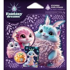 Un monde mystérieux et féerique à découvrir grâce à 15 stickers FANTASY DREAMS à décorer ! Cette pochette contient un set d'application facile (coupelle, carré de cire et stylet), 2250 pixel strass de 3 couleurs (rose, violet et bleu) et 750 mini cristaux (turquoise) pour sublimer les stickers et leur donner du relief.